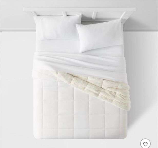 LOT 333 - (2) Faux Shearling Washed Microfiber Reversible Comforter - Room Essentials-grey and white