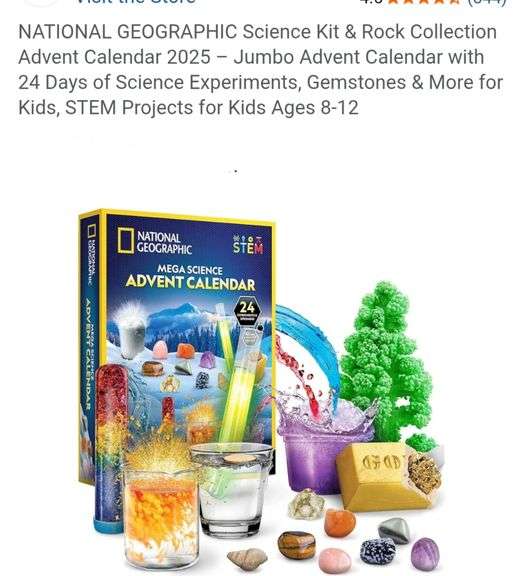 NATIONAL GEOGRAPHIC Science Kit & Rock Collection Advent Calendar 2025 – Jumbo Advent Calendar with 24 Days of Science Experiments, Gemstones & More for Kids, STEM Projects for Kids Ages 8-12