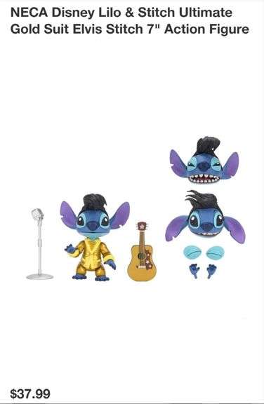 LOT 644 - NECA Disney Lilo & Stitch Ultimate Gold Suit Elvis Stitch 7" Action Figure