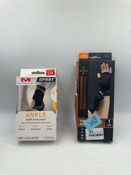 McDavid S/M Sport Ankle Sleeve with Wrap Support and Tommie Copper Sport Large/X-Large Compression Gloves