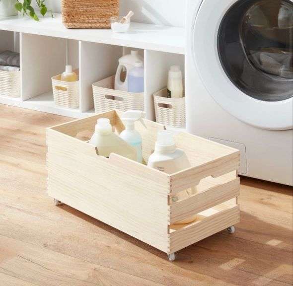 LOT 285 - Large Wood Bin with Wheels - Brightroomâ„¢