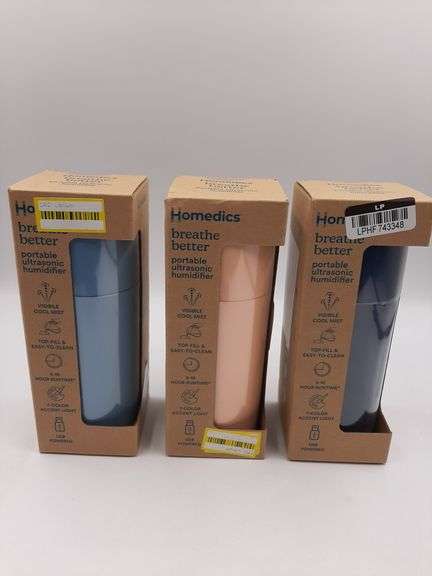 LOT 713 - 3pk Homedics Breathe Better Portable Ultrasonic Humidifier