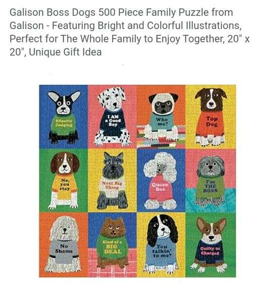 Galison Boss Dogs 500 Piece Family Puzzle from Galison - Featuring Bright and Colorful Illustrations, Perfect for The Whole Family to Enjoy Together, 20" x 20", Unique Gift Idea
