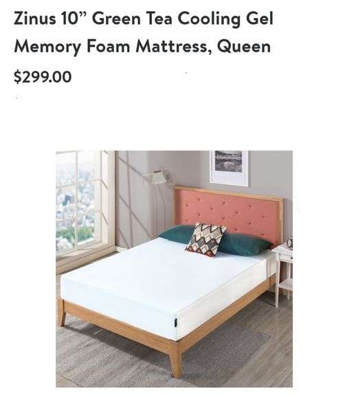 Zinus 10" Green Tea Memory Foam Mattress QUEEN