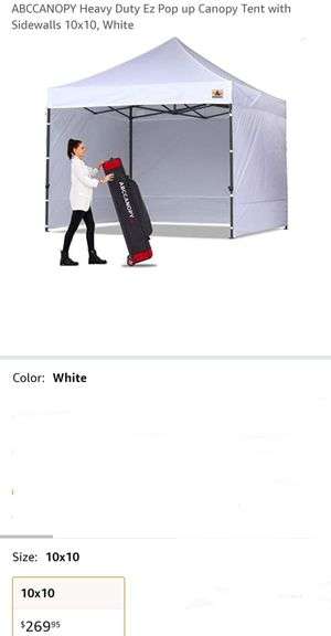 Abccanopy 10'x10' Heavy Duty EZ Pop Up Canopy Tent with Sidewalls