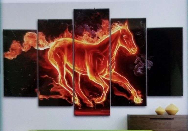5pc Flaming Horse Wall Art See Pic for Sizes