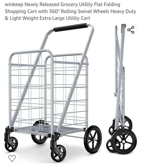 winkeep Newly Released Grocery Utility Flat Folding Shopping Cart with 360° Rolling Swivel Wheels Heavy Duty & Light Weight Extra Large Utility Cart