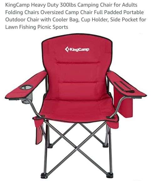 RED KingCamp Heavy Duty 300lbs Camping Chair for Adults Folding Chairs Oversized Camp Chair Full Padded Portable Outdoor Chair with Cooler Bag, Cup Holder, Side Pocket for Lawn Fishing Picnic Sports