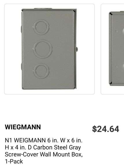 LOT 212y - Wiegmann Indoor Enclosure 6"×6"×4" Screw Cover Wall Mount Box Carbon Steel Gray