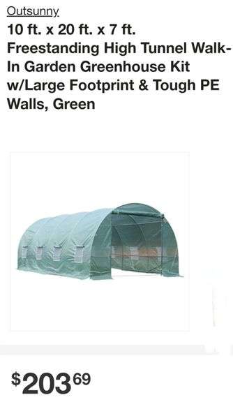 Outsunny 10 ft. x 20 ft. x 7 ft. Freestanding High Tunnel Walk-In Garden Greenhouse Kit w/Large Footprint & Tough PE Walls, Green