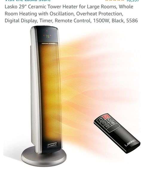 Lasko 29” Ceramic Tower Heater for Large Rooms, Whole Room Heating with Oscillation, Overheat Protection, Digital Display, Timer, Remote Control, 1500W, Black, 5586