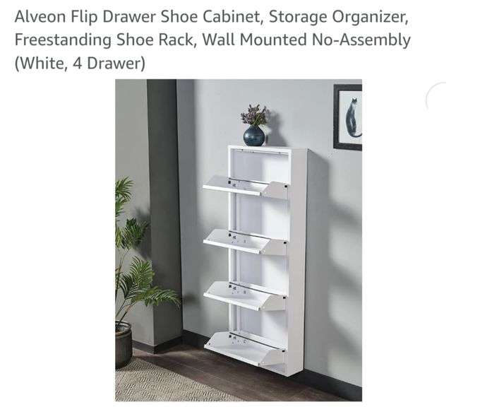 Alveon Flip Drawer Shoe Cabinet, Storage Organizer, Freestanding Shoe Rack, Wall Mounted No-Assembly (White, 4 Drawer)