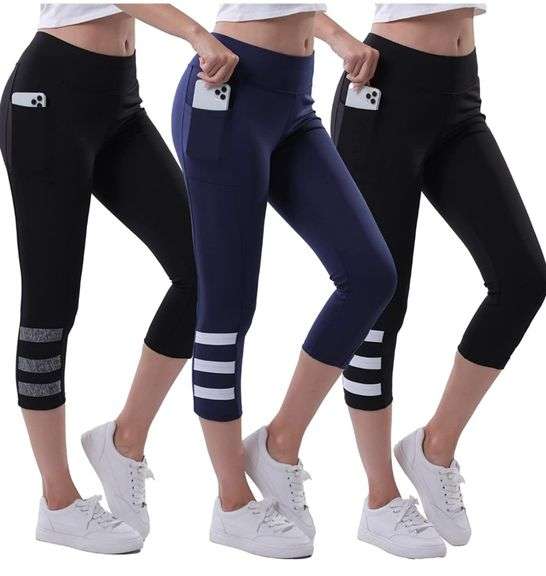LOT 348 - Women's 3 Pack Size 3X Capri Leggings With Pockets For Tummy Control