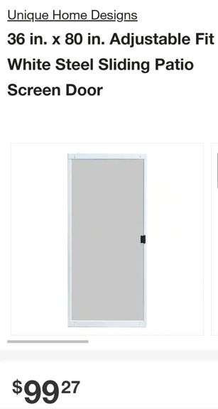 LOT 89y - Unique Home Designs 36 in. x 80 in. Adjustable Fit White Steel Sliding Patio Screen Door