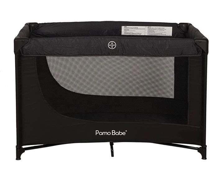 LOT 141 - Pamo Babe Portable Crib Baby Playpen with Mattress and Carry Bag (Black)