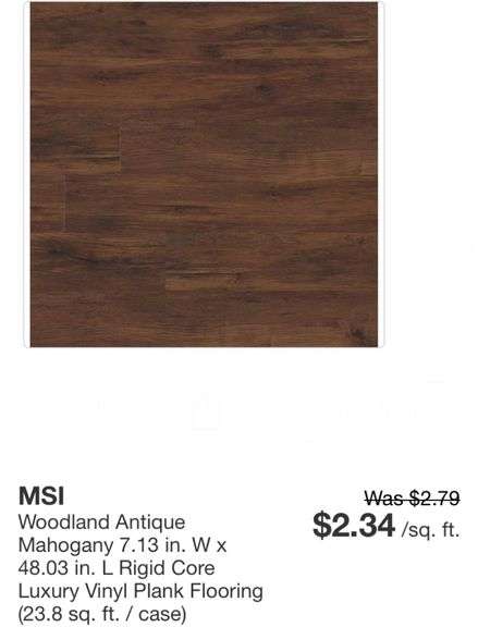 LOT 86y - 9 Boxes Of Woodland Antique Mahogany 7.13”x48.03” Luxury Plank Flooring