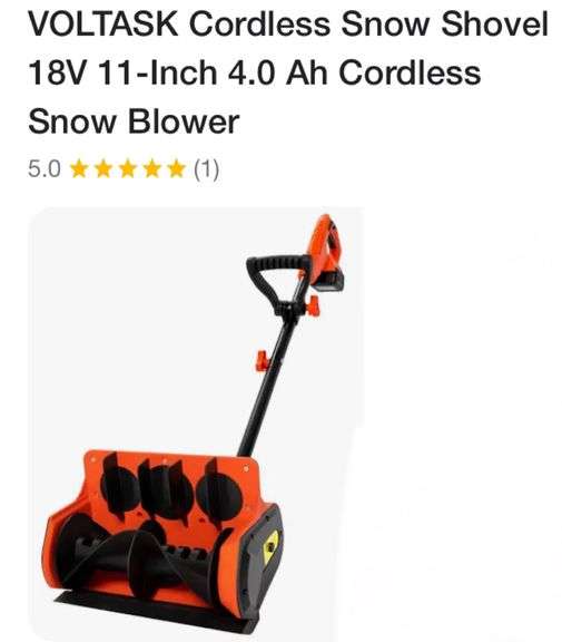 READ!!! OUT OF BOX & NO BATTERY or CHARGER- VOLTASK Cordless Snow Shovel 18V 11-Inch