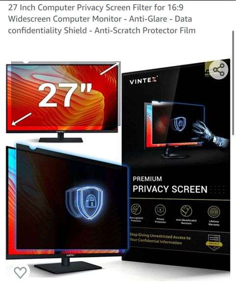 27 Inch Computer Privacy Screen Filter for 16:9 Widescreen Computer Monitor - Anti-Glare - Data confidentiality Shield - Anti-Scratch Protector Film