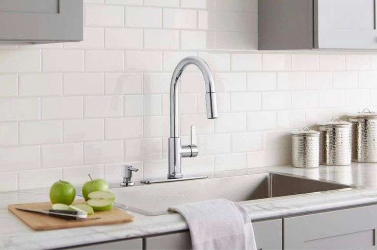 Glacier Bay Paulina Single-Handle Pull-Down Sprayer Kitchen Faucet with TurboSpray and FastMount Including Soap Dispenser in Chrome