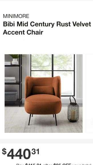 LOT 74y - MINIMORE Bibi Mid Century Rust Velvet Accent Chair