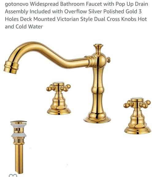 gotonovo Widespread Bathroom Faucet with Pop Up Drain Assembly Included with Overflow Silver Polished Gold 3 Holes Deck Mounted Victorian Style Dual Cross Knobs Hot and Cold Water