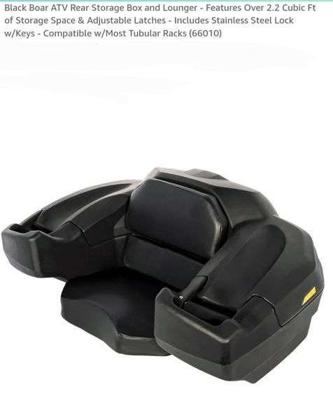Black Boar ATV Rear Storage Box and Lounger - Features Over 2.2 Cubic Ft of Storage Space & Adjustable Latches