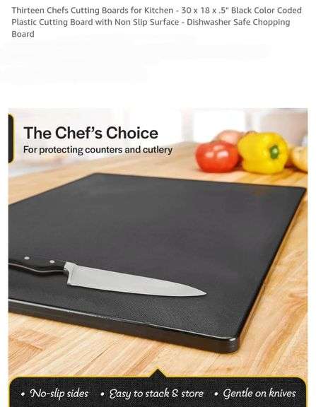 Thirteen Chefs Cutting Boards for Kitchen - 30 x 18 x .5" Black Color Coded Plastic Cutting Board with Non Slip Surface - Dishwasher Safe Chopping Board