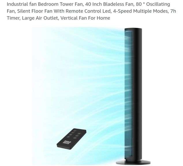 Industrial fan Bedroom Tower Fan, 40 Inch Bladeless Fan, 80 ° Oscillating Fan, Silent Floor Fan With Remote Control Led, 4-Speed Multiple Modes, 7h Timer, Large Air Outlet, Vertical Fan For Home