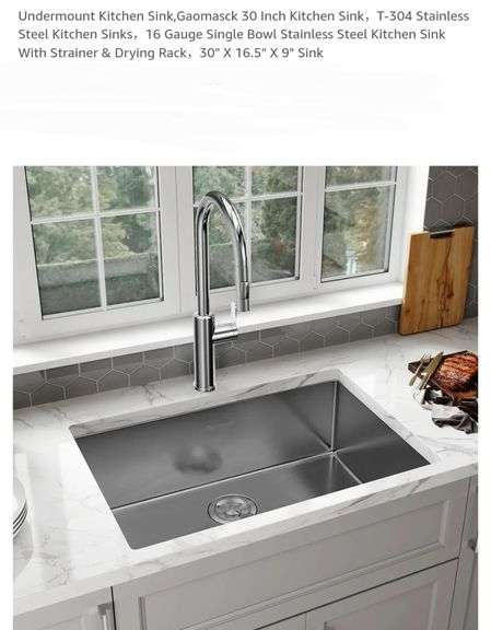 Undermount Gaomasck 30 Inch Kitchen Sink,T-304 Stainless Steel, 16 Gauge Single Bowl With Strainer & Drying Rack,30" X 16.5" X 9"