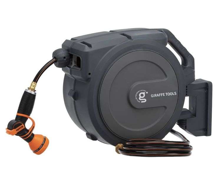 Giraffe Tools Hose Reel 1/2‘’ 78 ft, Heavy Duty Retractable Garden Hose Reel with Any Length Lock, Slow Return System, Wall Mounted and 180 Deg Swivel Bracket