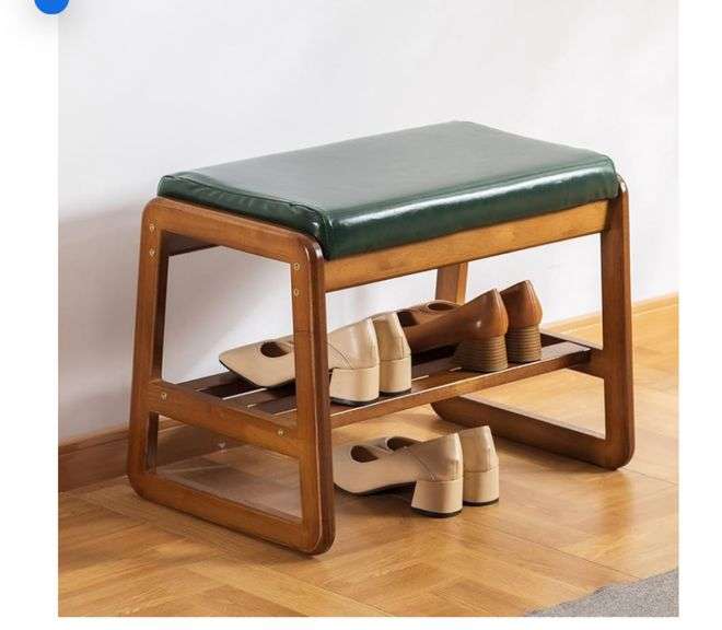 latifolia Shoe Bench, Solid Wood Shoe Bench with Cushion, 2 Tier Shoe Storage Bench for Entryway, Hallway, Living Room (Green, 21.65" L)