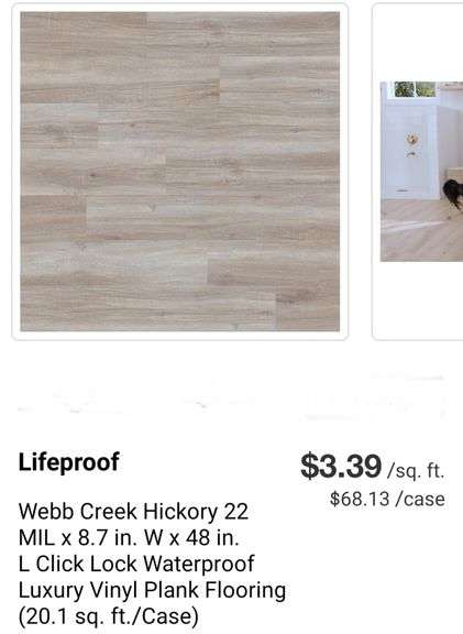 17 Boxes of Lifeproof Webb Creek Hickory 22 MIL x 8.7 in. W x 48 in. L Click Lock Waterproof Luxury Vinyl Plank Flooring (20.1 sq. ft./Case)